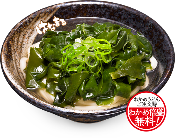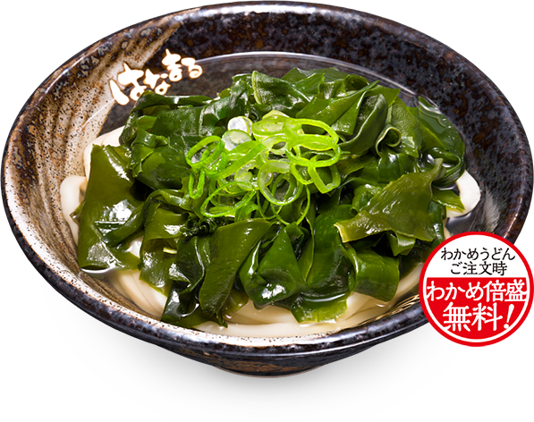ミネラルをたっぷり含んだ海の有機野菜・わかめはうどんとの相性が抜群!うどんが見えなくなるまでたっぷり加えることで、より一層美味しいメニューに仕上げました。女性に人気のヘルシーうどんです。
